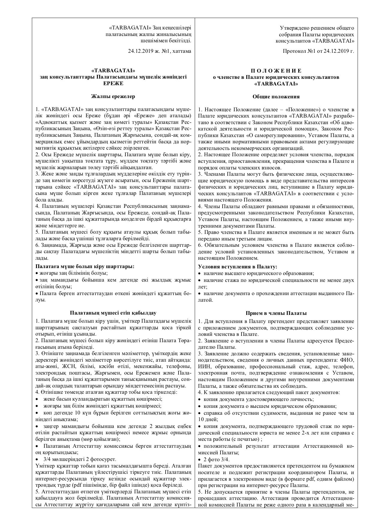 Положение о членстве в Палате